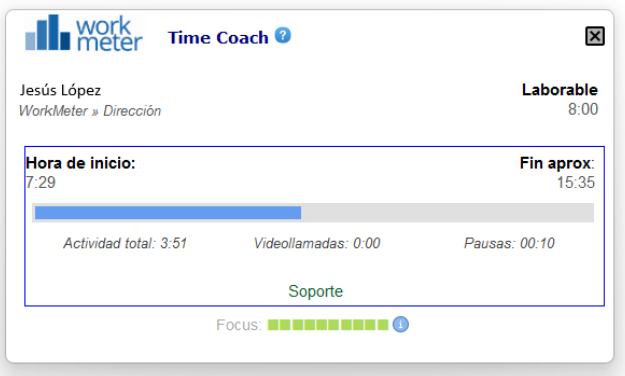 This tab offers online information to help the employee understand how their workday is progressing, as well as their level of concentration or focus while performing activities on the PC.