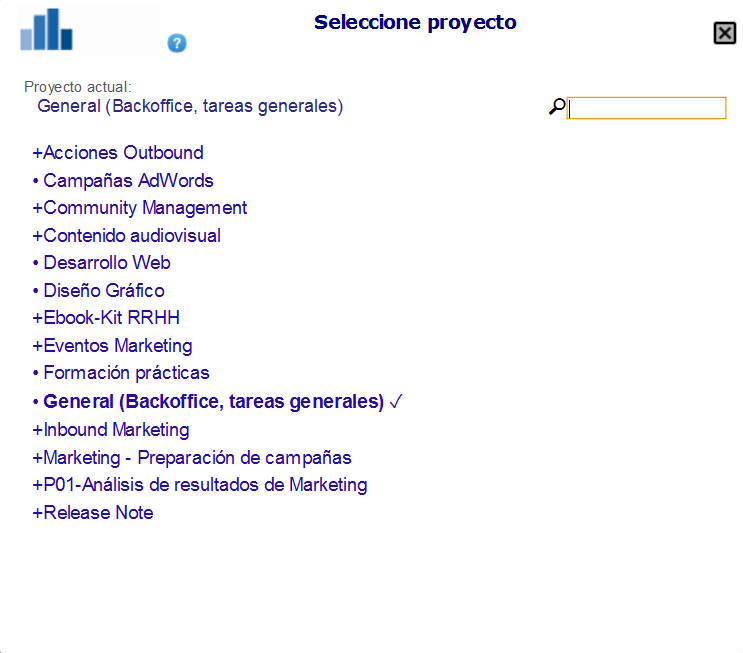 Additionally, by clicking on the project magnifying glass or double-clicking the WorkMeter icon, all projects created by administrators can be viewed and, if these permissions are granted, the project trigger can be edited.