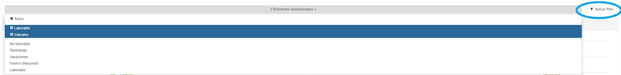 Puede, ahora, filtrar los datos por tipo de día. Se puede seleccionar más de un tipo de día a la vez. Una vez seleccionados el tipo de día que desea incluir en el filtro, pulse el