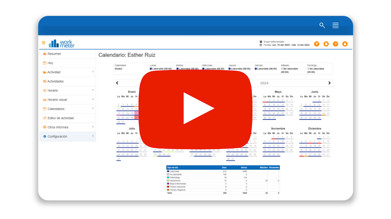 Al filtrar por empleado dentro del apartado Calendario, se muestran por colores los tipos de días que se han empleado de acuerdo al resumen de la parte inferior de la pantalla. Así será más fácil identificarlos.