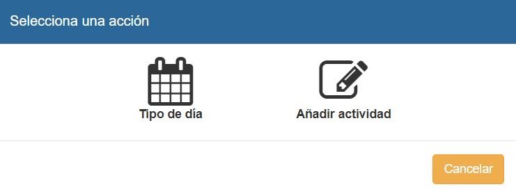 - Si la opción de configuración general permite la edición de actividad: Si la edición de actividad está permitida, podrá añadir, desde el calendario, actividad en los días en los que no hay ninguna actividad (SÓLO LOS DÍAS SIN ACTIVIDAD)