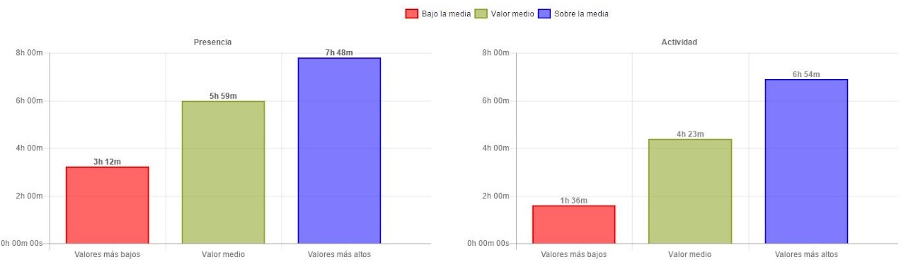 - Rango activo : tiempo de presencia media diaria de este grupo para los días seleccionados.