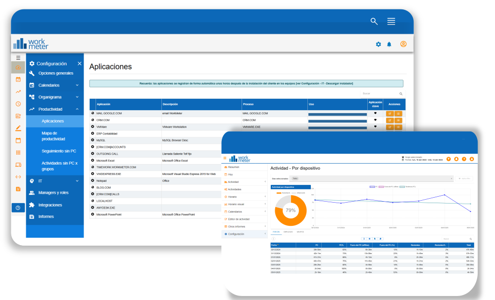 Gracias a queel software de gestión del rendimiento mide la partedel tiempo activo que el empleado pasa en aplicaciones consideradas como productivas, podremos configurar: