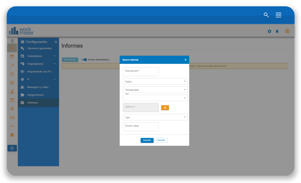 Una vez dentro de la solución de WorkMeter, dirígete a: