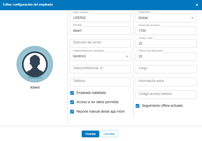 - Información Extra : este campo sirve para añadir información relevante para identificar al empleado (por ejemplo un identificador).