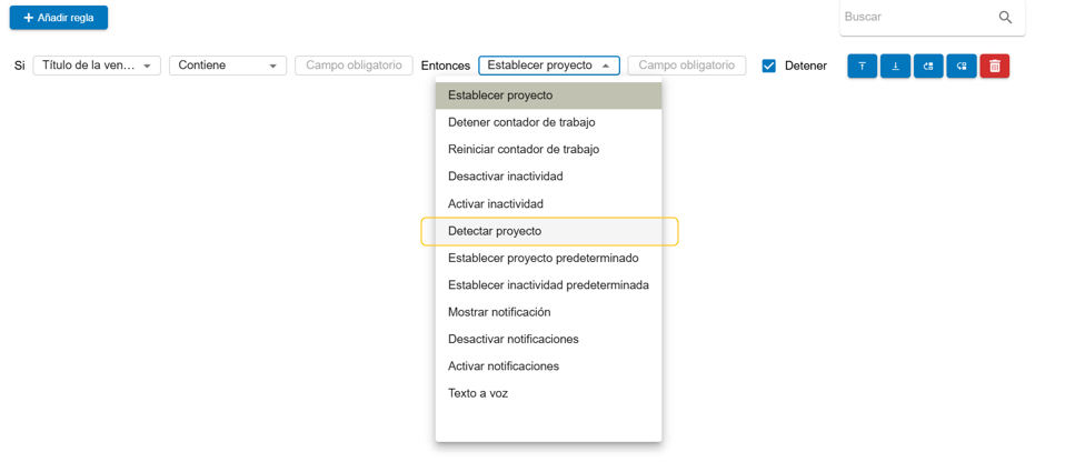 Seguidamente, seleccionamos “Detectar Proyecto” y automáticamente al abrir un contenido con un nombre similar al del proyecto seleccionado, se empezará a medir el tiempo en este proyecto.