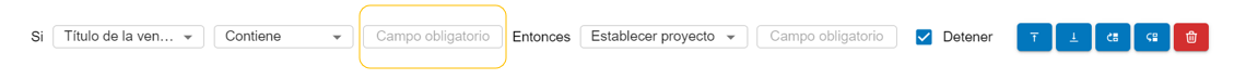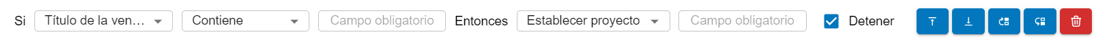 Las reglas pueden ordenarse según su prioridad y se procesarán en el orden que aparecen. Una regla puede configurarse para que, si se cumple, deje de evaluar las siguientes. Estas acciones las puede realizar con los botones: