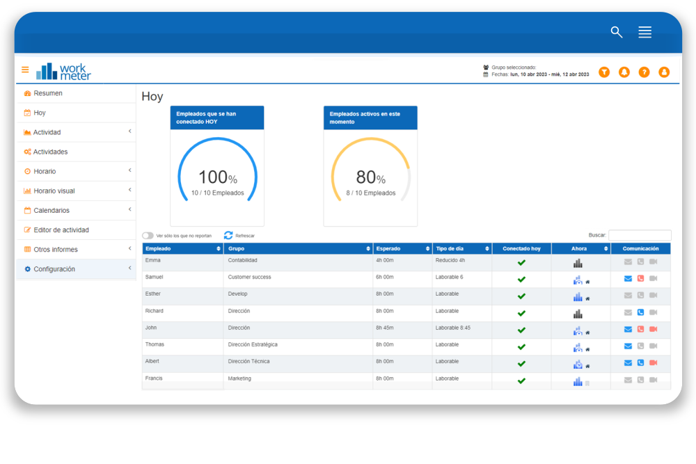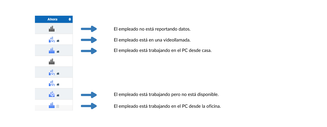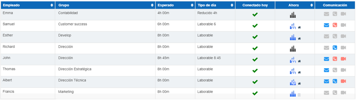 La columna denominada “Ahora” nos muestra el estado de la actividad de cada empleado.