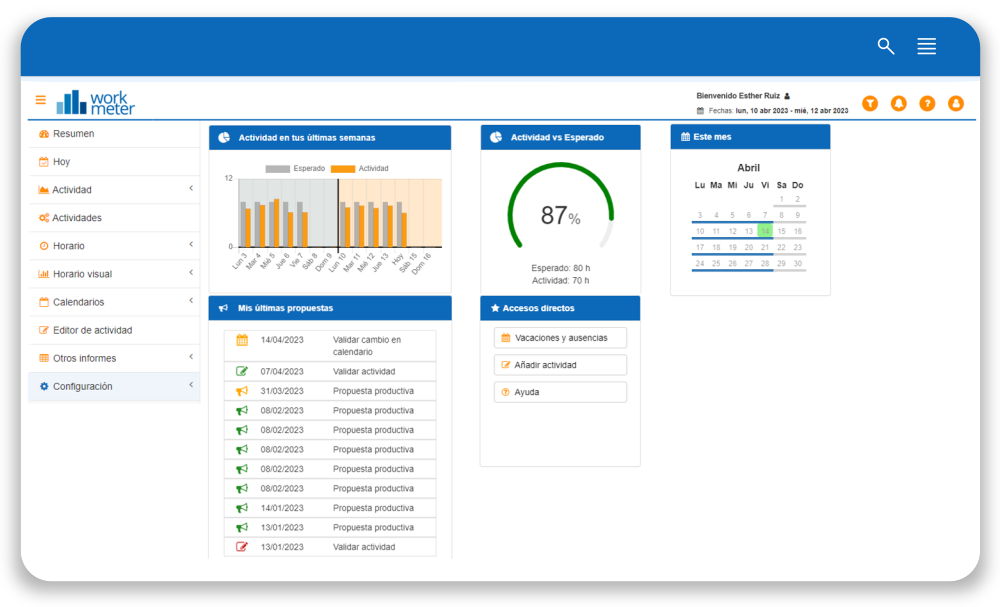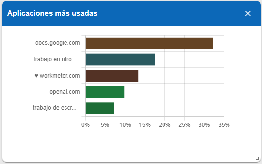 - Aplicaciones. Con un clic, podrás acceder al panel de aplicaciones para analizar tu rendimiento y tiempo productivo.