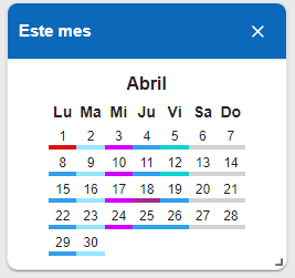 Calendario de todo el mes donde aparecen los tipos de días por colores.