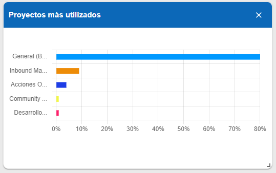 Gráfica donde aparecen los distintos proyectos en los que has trabajado y el porcentaje de tiempo dedicado a cada uno.