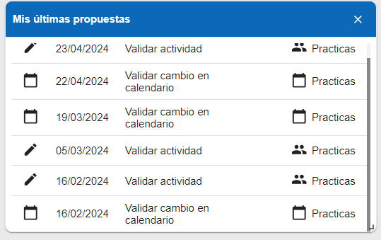 - Validar actividad: Accederás también al panel de notificaciones pero en este caso verás solamente las solicitudes referentes a cambios de actividad.
