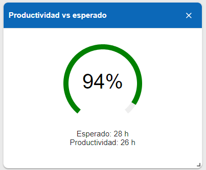 - Porcentaje de la actividad y la productividad sobre el esperado dividido por grupos y departamentos.